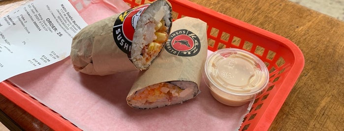 Kazu Sushi Burrito in Jacksonville , FL - yellowpages.com Signature Sushi Burrito Kazu Sushi Burrito Spicy tuna, salmon, shrimp tempura, avocado, cucumber, mango, tobiko, tempura flakes and shrimp sauce $12.00 Poke-Poke Burrito Tuna, salmon, avocado, cucumber, jalapeno, edamame, mango, tobiko, seaweed powder and poke sauce $12.00 Spectrum Burrito