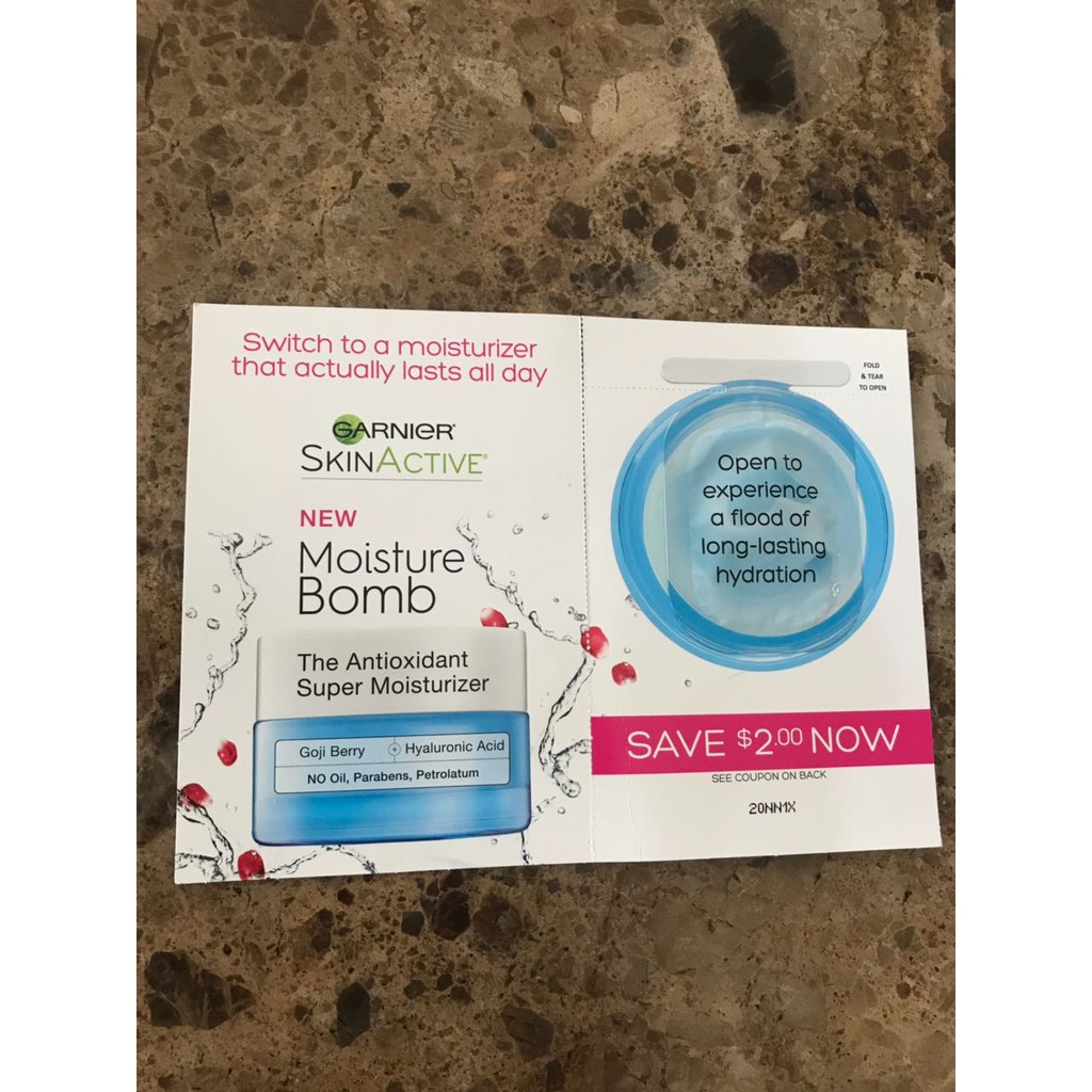 Garnier SkinActive Moisture Bomb Sample | Freebie Hunter These are limited to 1 per household and are currently only shipping in the U.S. To request your free sample, simply head over to the Garnier USA website by clicking here or on the button below. Then click on the black bar at the bottom of the page which says "Get a free moisture bomb sample" which will take you straight to the sample request form! Garnier Moisture Bomb Mask Coupon — Deals from SaveaLoonie! This super hydrating sheet mask provides deep moisture for instantly softer, more radiant skin in only 15 minutes! A bomb of efficacy that provides skin 24 hours of lasting hydration. Sign up and claim your coupon to save $1.00 off Garnier Moisture Bomb Super Hydrating Sheet Mask This is a print coupon Valid for a limited time only.